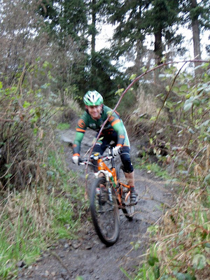 We started off, and i was in the top 5 off the top. It went pretty much straight into a steep climb... Scott Mitchel(Pro City) launched and flew up the hill, never to be seen again. Jamie Emery(Pro City) lead the chase (well, i wondered if he was blocking/defending, but i wouldn't have wanted to go much harder.)